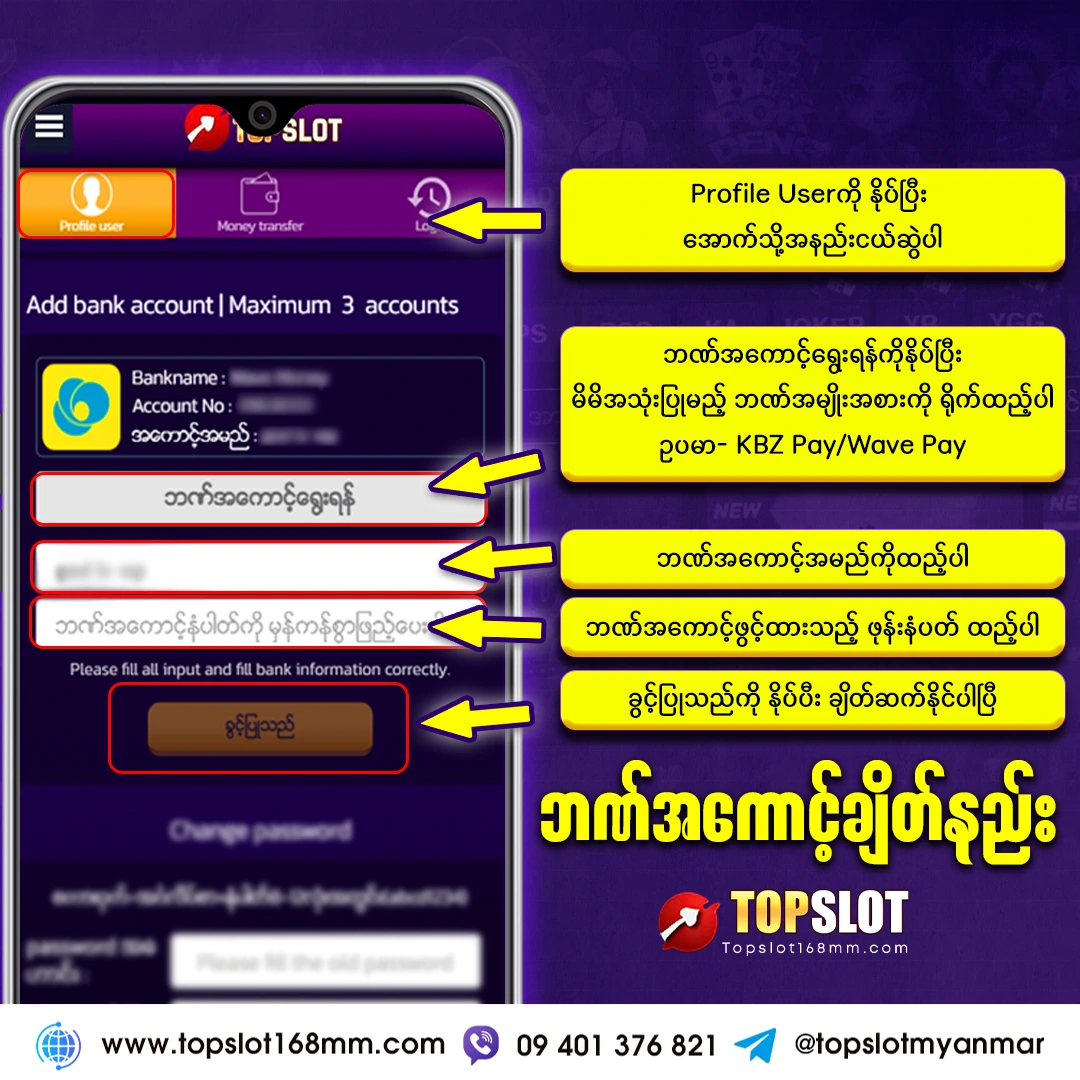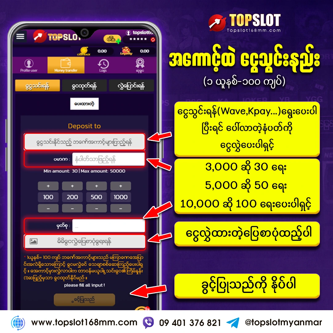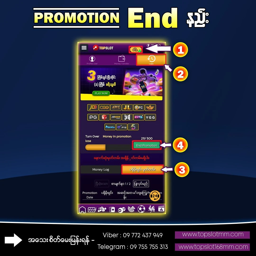 2. Slot ဂိမ္းအားလုံးတြက္ခ်က္ေပးပါသည္။(YGG ၊ ACE WIN မပါဝင္ပါ)အႏိုင္ရရွိေသာဆုမ်ားကို ႀကိမ္ေရတစ္ဆကစားၿပီးမွသာလွ်င္ေငြထုတ္ႏိုင္မည္။
